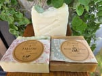 Ingredients may vary depending on my mood: Locally sourced beef tallow, organic extra virgin coconut oil, infused olive oil, lye, and WV mountain spring water. My tallow and oils are usually infused with Chamomile, Yarrow, or Calendula which are all great for the skin.